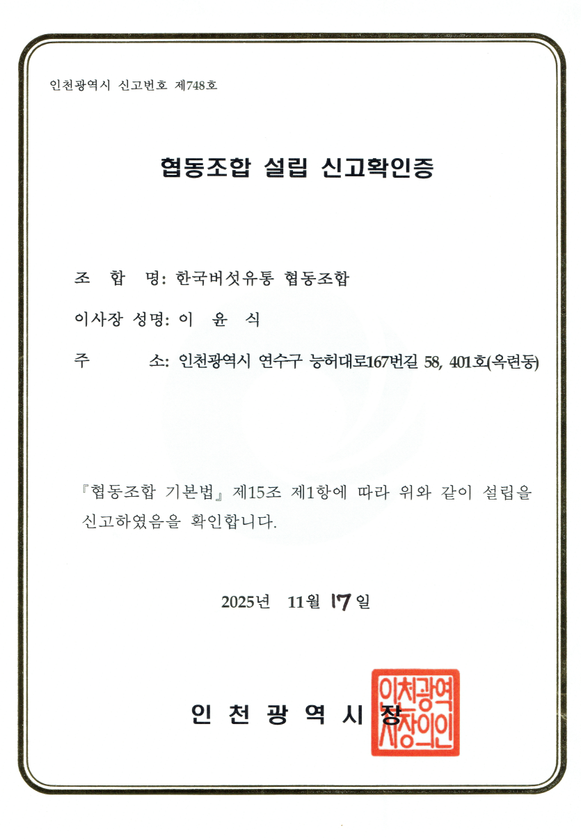 협동조합 설립 신고확인증 작성자 정보 최고관리자 작성 작성일 2026.01.09 16:20 컨텐츠 정보 1 조회 목록 본문 협동조합 설립 신고확인증 SNS 공유 관련자료 이전 통신판매업신고증 작성일 2026.01.13 10:53 다음 사업자등록증 작성일 2026.01.09 16:19 목록