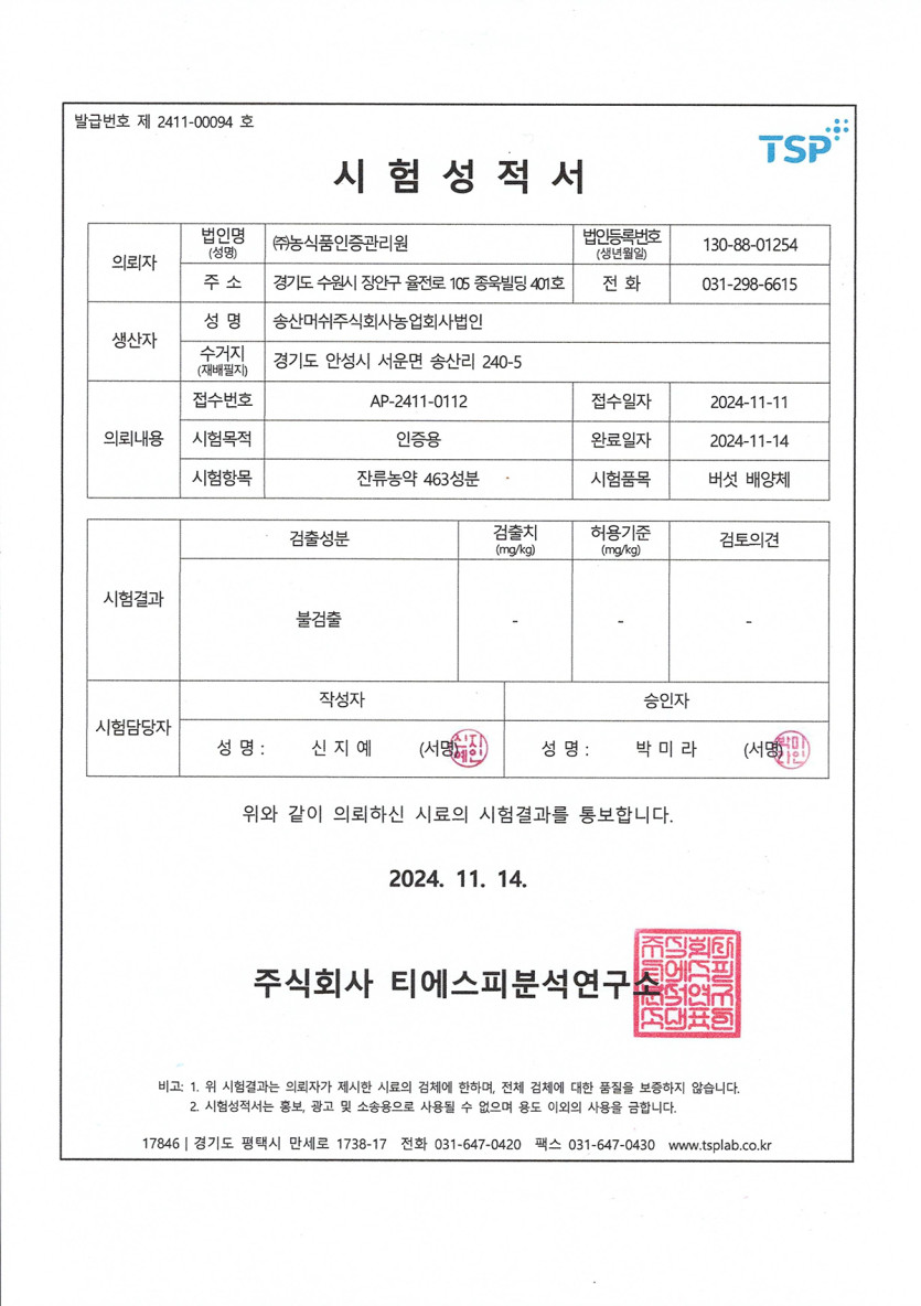 잔류농약시험성적서 작성자 정보 최고관리자 작성 작성일 2026.01.13 11:02 컨텐츠 정보 1 조회 목록 본문 잔류농약시험성적서1 SNS 공유 관련자료 이전 중금속서분시험성적서 작성일 2026.01.13 11:03 다음 원산지증명서 작성일 2026.01.13 11:00 목록