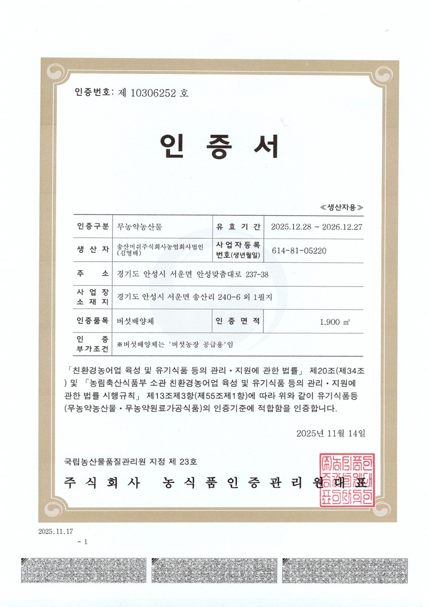 친환경인증서 작성자 정보 최고관리자 작성 작성일 2026.01.13 11:03 컨텐츠 정보 1 조회 목록 본문 친환경인증서 SNS 공유 관련자료 다음 중금속서분시험성적서 작성일 2026.01.13 11:03 목록