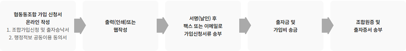 구분 가입비 출자금 개인 100,000 300,000이상 법인,단체 300,000 1,000,000이상 - 4. 가입절차